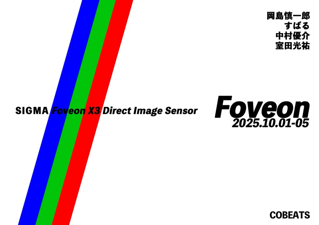 Foveon展 2025.10.052025.10.06 開催日: 2025年10月1日 - 2025年10月5日カテゴリー: _2025年, 2Fコビーツ, 過去の展示 2F コビーツ 岡島 慎一郎 / すばる / 中村 優介 / 室田 光祐